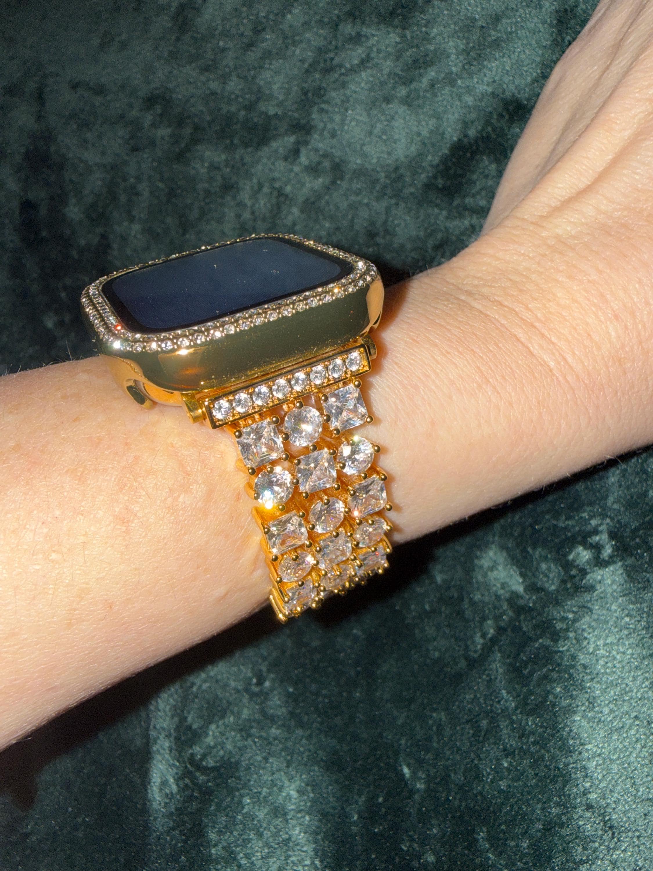 Apple Watch Band Material: Yellow Gold Alloy for durability and shine with hand set Swarovski Crystals Elements