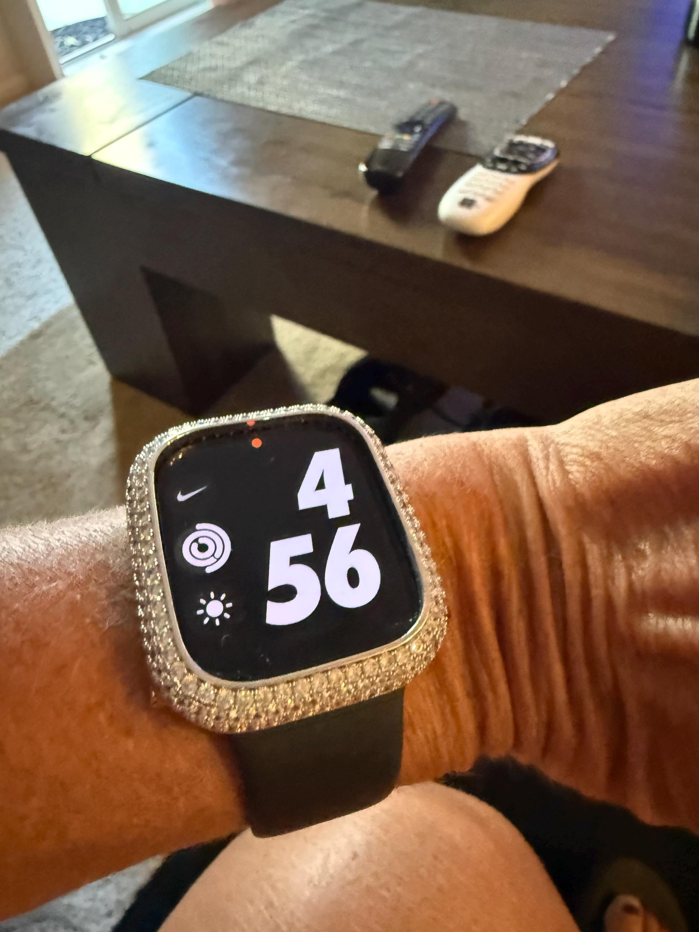 Our band is easy to resize with the included tool and instructions, and is available as a complete set with the band and bezel, just the band, or just the bezel cover. For even more shine, add our Silver Apple Watch Case in 14K White Gold Plated Metal, featuring hand set Pave Lab Diamonds. Please note that our bezel covers will not fit properly with any type of screen protector, including liquid glass. These bezels are specifically designed to fit the Apple Watch without any alterations.