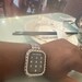 Add a Silver Custom plated in 14k Gold plated apple watch cover set with hand set high quality 2.5mm and micro pave lab diamonds. Two bars on the back hold the watch in place with access to all buttons, no screen protector.